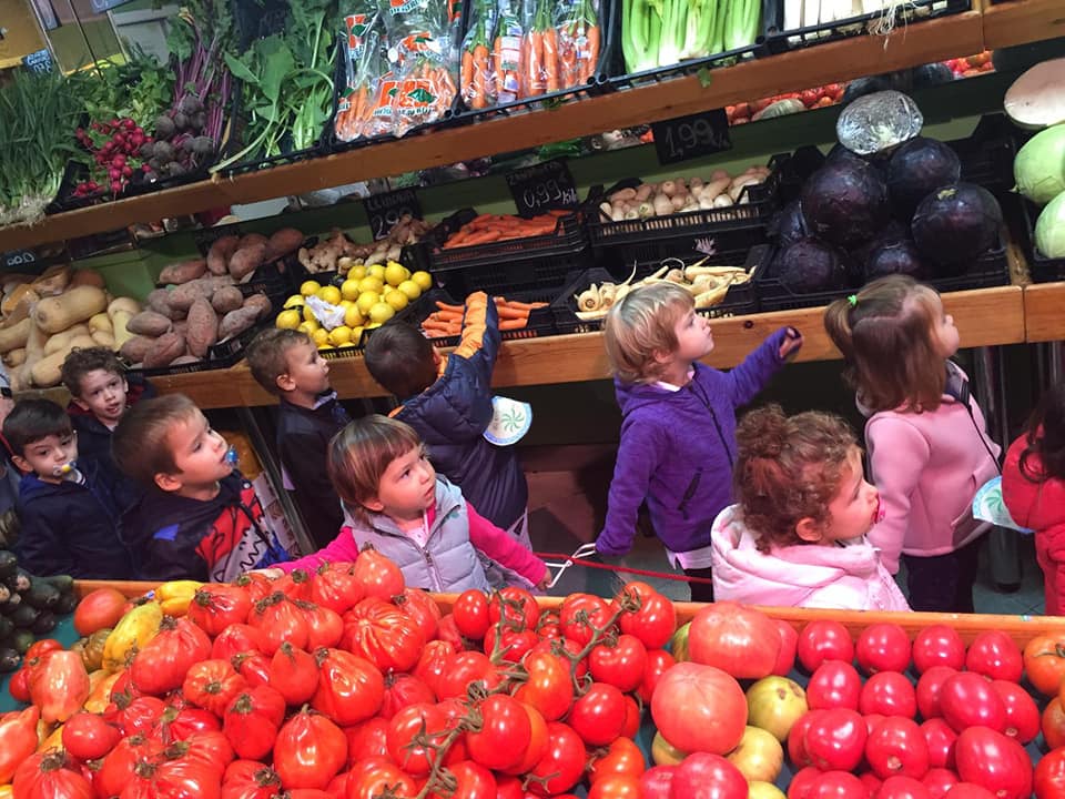 Sortim a la fruiteria de l’Illa tots plegats, els nervis i l’emoció de la primera sortida dels amics es reflecteix en les cares i les ganes de sentir-nos responsables i capaços tot decidint, observant, coneixent i comprant l’esmorzar de dimecres. Mirem el barri amb ulls d’infants!